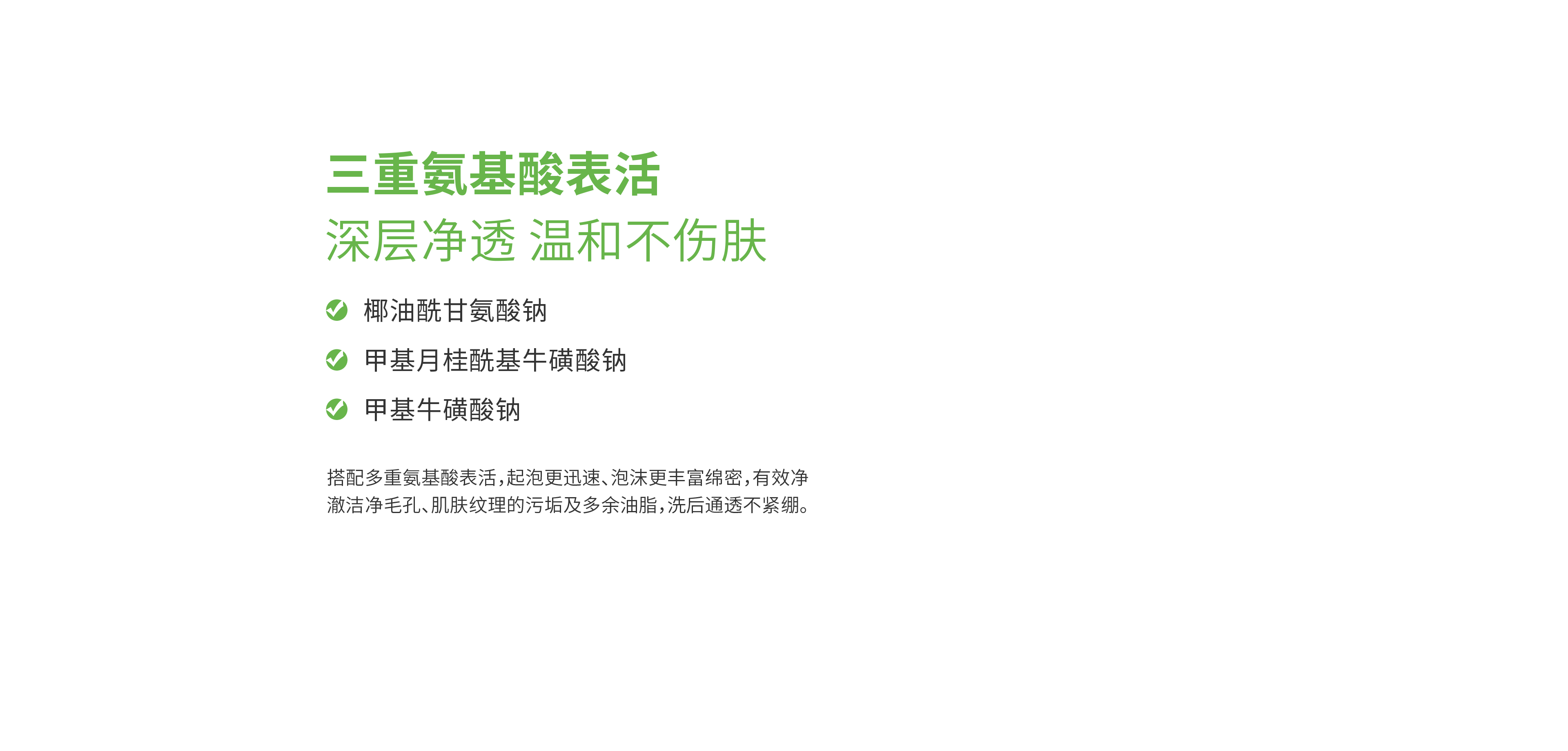 蕴含透明质酸钠、牛油果树果脂、苦橙花油、积雪草苷、茶叶提取物、欧洲水青冈芽提取物等成分。层层净澈毛孔、肌肤纹理的污垢及多余油脂,肌肤随即洁净通透;泡沫包裹肌肤,保持肌肤水油平衡,令肌肤洁净舒适。